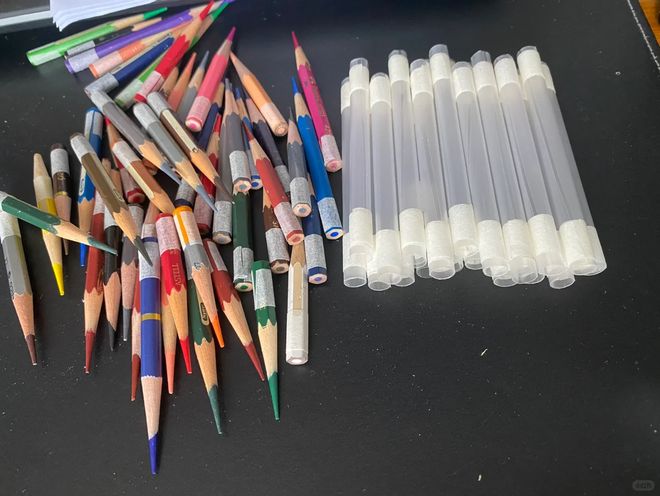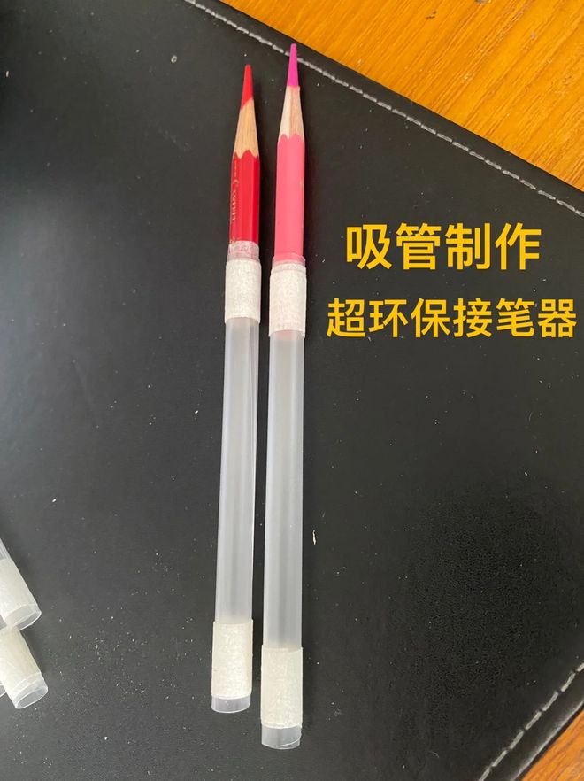 用吸管喝胶带将铅笔头加长,这样拿在手里就顺手多了,直到将铅笔用到一点都不剩,这才是节俭好习惯。