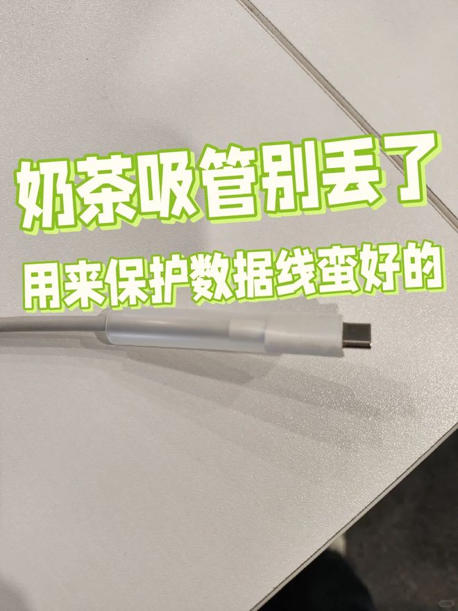数据线使用时间久了,接头的地方总是容易折断,我们可以使用吸管来保护数据线,把吸管剪成一小段之后,套在数据线容易折断的位置上,这样数据线就不容易折断了。