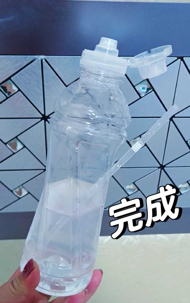 把尖叫瓶子盖子上的硅胶薄膜用小刀或者尖嘴的剪刀去掉方便吸入。在瓶身上扎个小洞,插入吸管,盖好瓶盖,装好盐水就大功告成了。
