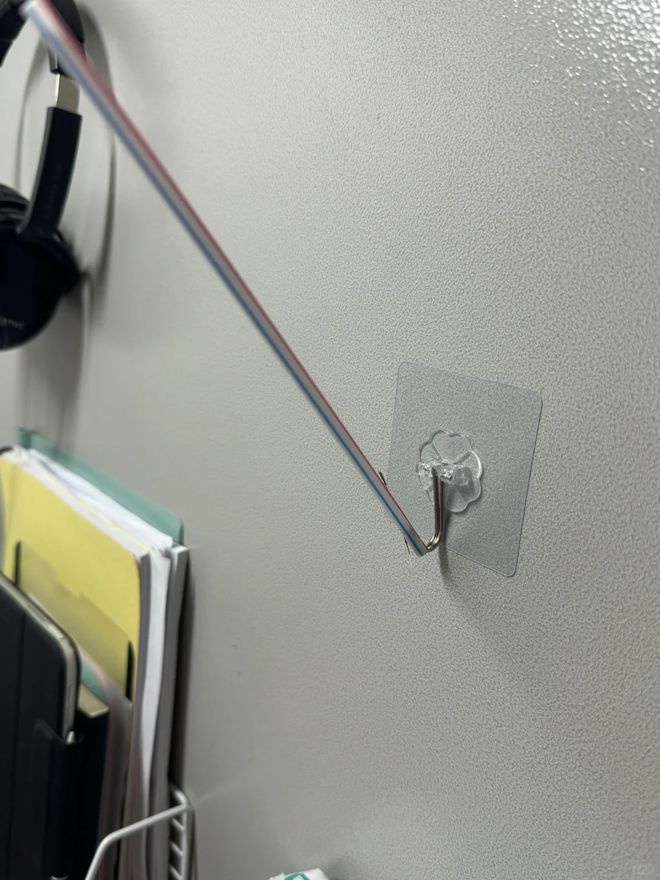 但是只能挂一个,我们可以利用吸管将挂钩延长,这样再多的扎头发皮筋,发圈都可以放在里面收纳。