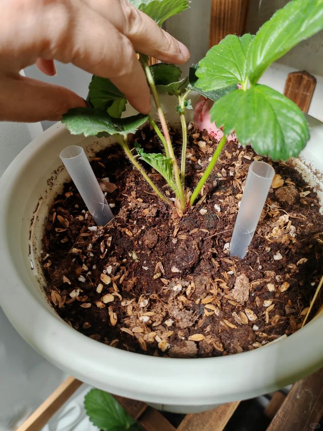 把吸管插进泥土当中,就能够通风透气了,能够有效防止植物烂根,避免花土板结不管是种的花还是家里的蔬菜草莓,这些都可以用这个办法。