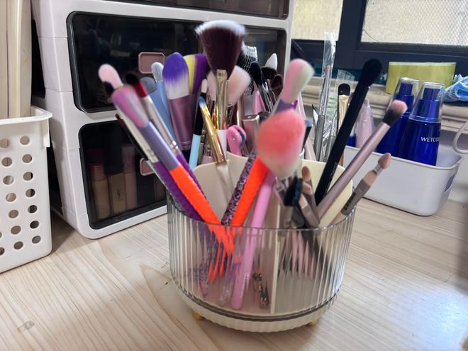 平常化妆使用的各种化妆刷,直接放在收纳盒里面容易东倒西歪的,每次用的时候都很麻烦,每次都要手动聚拢,如果你也是这样的,教你一个小妙招,