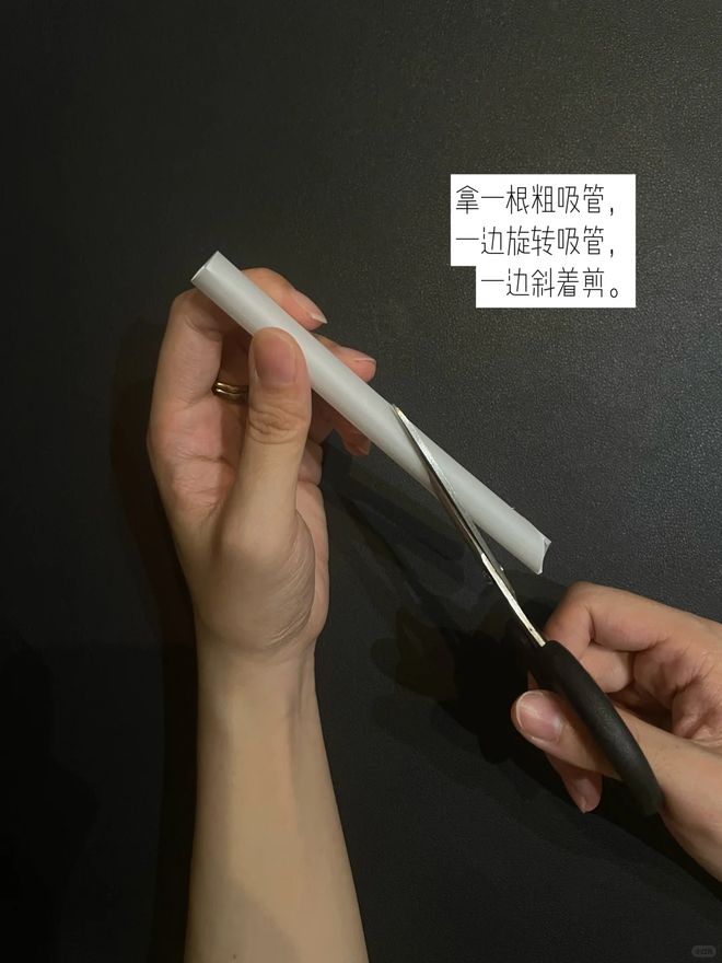 如果你想要将数据线放在一起,也可以使用吸管,找一根吸管,然后斜着剪刀,将吸管剪成电话线,再把需要缠绕在一起的数据线,缠绕在吸管里面就可以了。